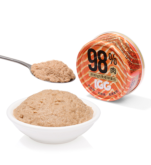 原料组成:三文鱼(98%)、蛋粉、牛初乳粉(含IgG免疫球蛋白)。添加剂组成:牛磺酸、维生素B1、维生素B2、维生素B6、维生素B12、维生素D3、dl-α-生育酚乙酸酯、烟酰胺、氯化胆碱、叶酸、D-泛酸钙、D-生物素、轻质碳酸钙、氯化钾、硫酸亚铁、硫酸镁、硫酸铜、硫酸锌、硫酸锰、碘化钾。