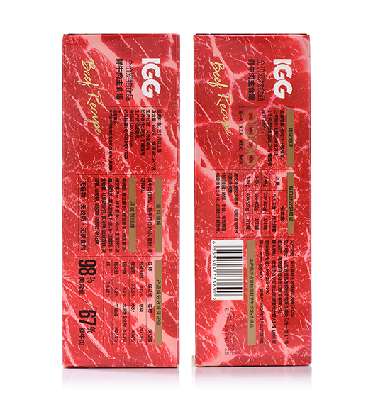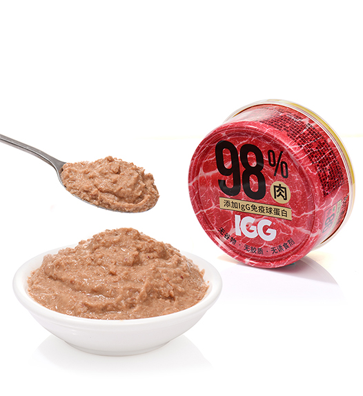 原料组成:鲜牛肉(67%)、熟牛肝(31%)、蛋粉、牛初乳粉(含IgG免疫球蛋白)。添加剂组成:牛磺酸、维生素B1、维生素B2、维生素B6、维生素B12、维生素D3、dl-α-生育酚乙酸酯、烟酰胺、氯化胆碱、叶酸、D-泛酸钙、D-生物素、轻质碳酸钙、氯化钾、硫酸亚铁、硫酸镁、硫酸铜、硫酸锌、硫酸锰、碘化钾。